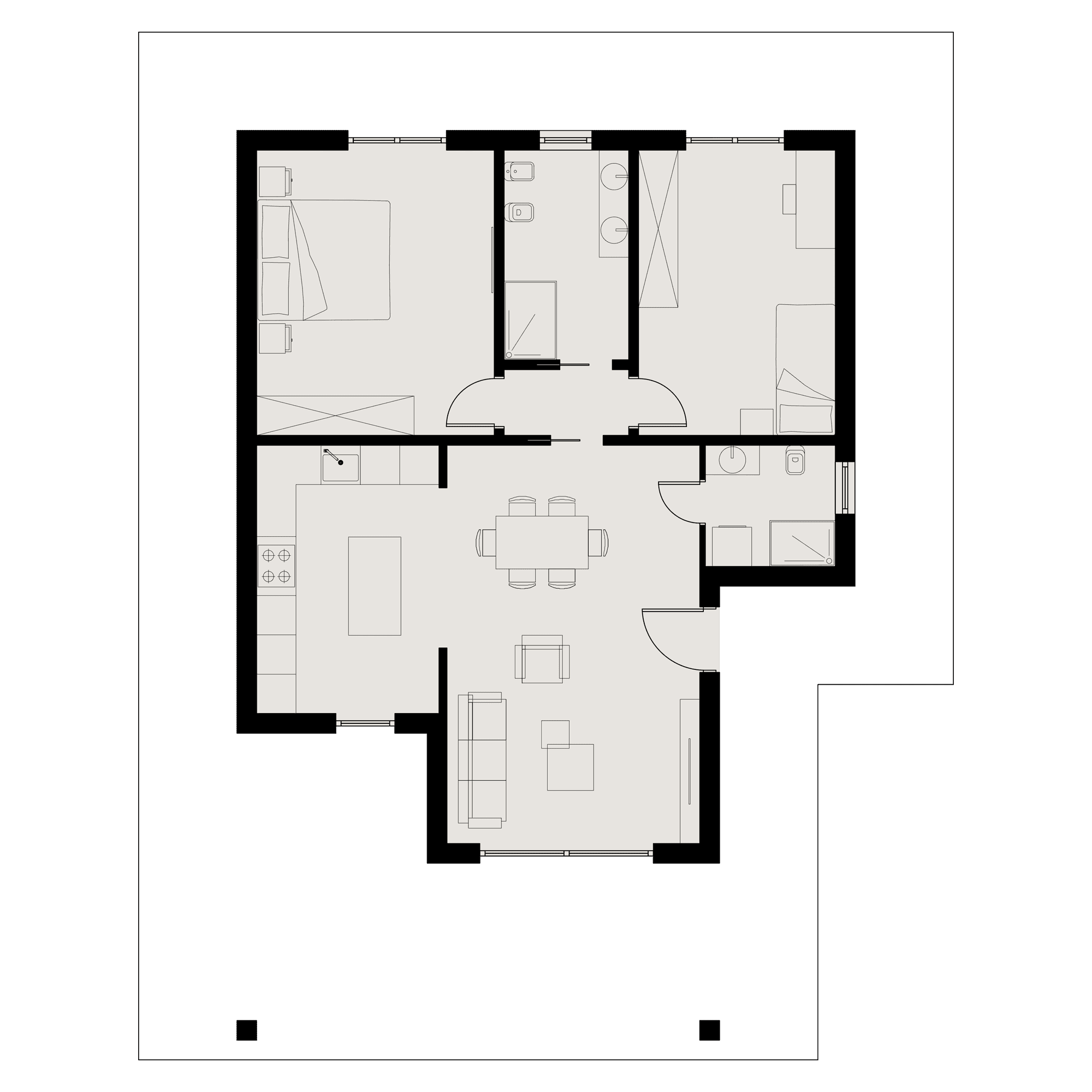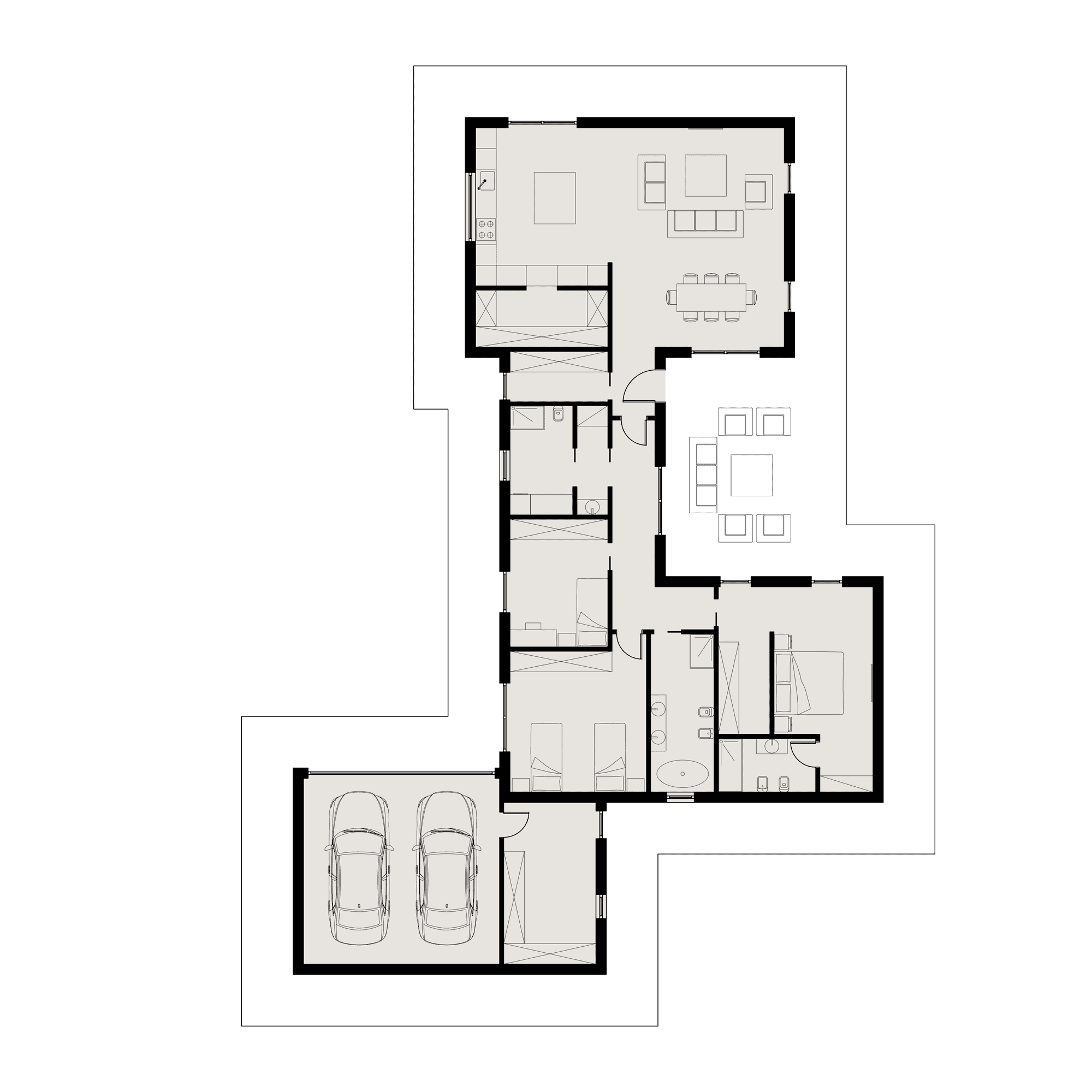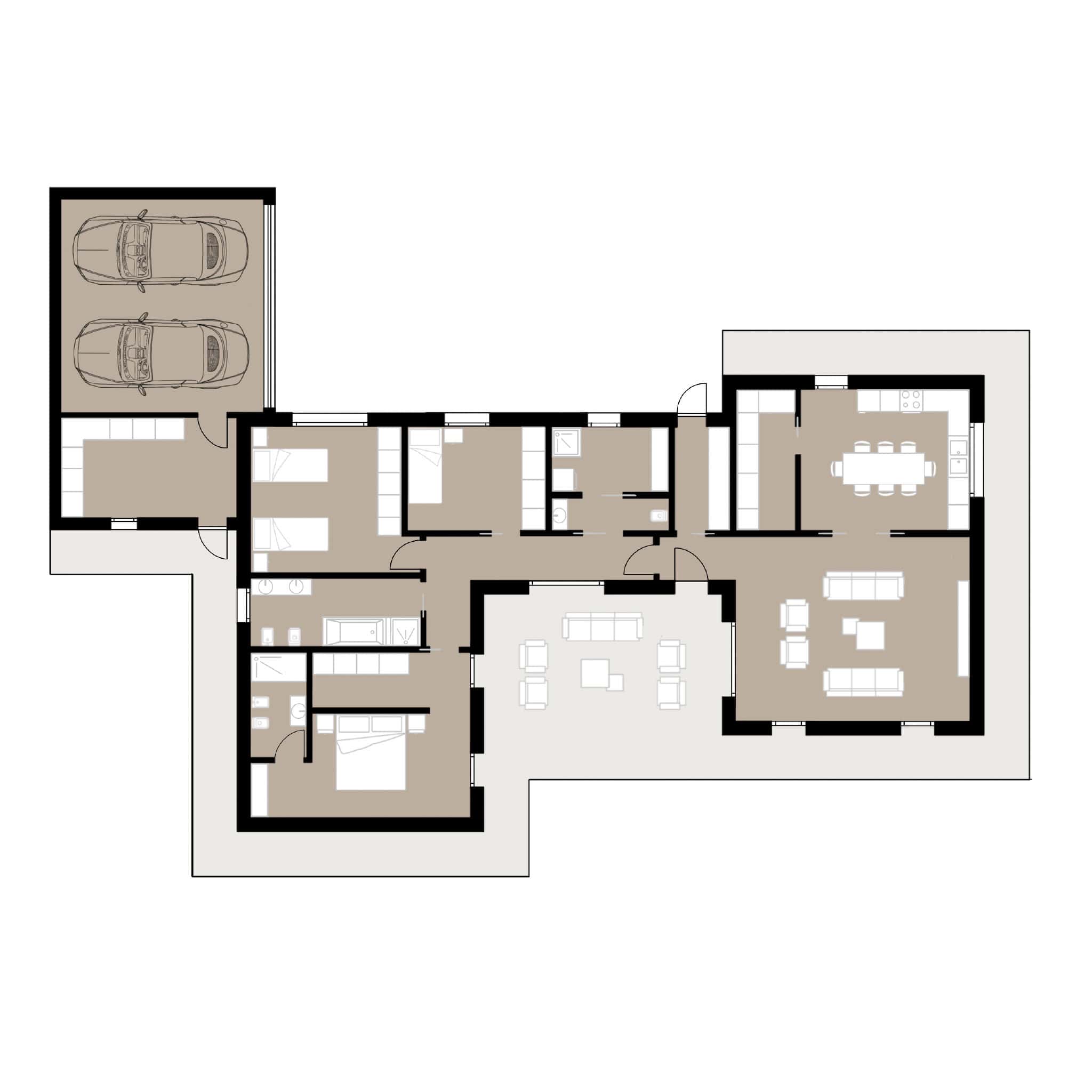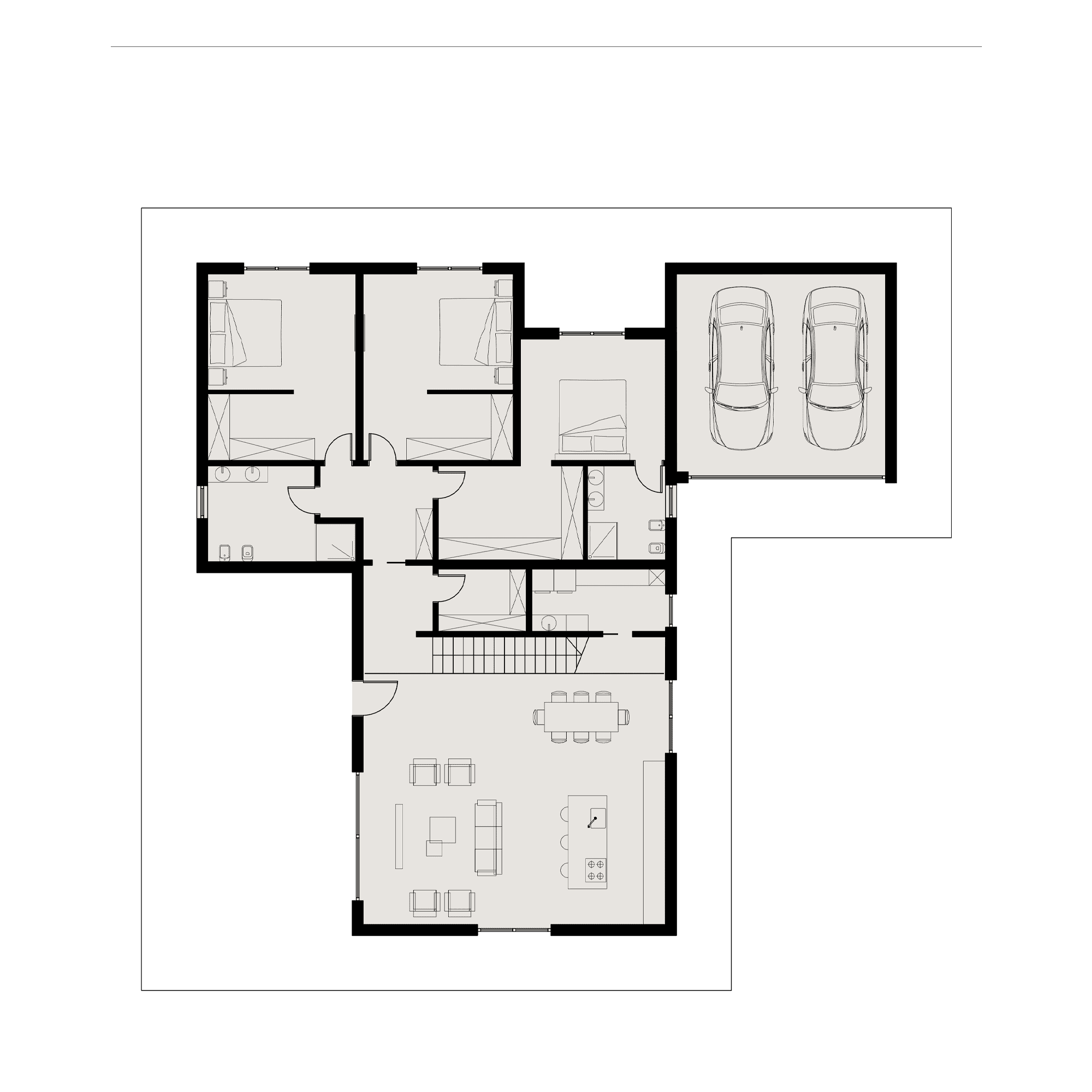 Un ambiente abitativo flessibile e versatile, dove ogni spazio è ottimizzato per adattarsi alle diverse esigenze: a partire da una cucina spaziosa e funzionale, con cabina-dispensa. Il salotto è adattabile e flessibile, con uno spazio all’aperto naturale estensione della zona living che aumenta la fruizione e la vivibilità. Le camere da letto, compresa la master suite con cabina armadio e bagno privato, offrono spazi per le diverse esigenze di riposo e privacy. Da ultimo una stanza adiacente al garage per fornire ulteriore spazio e per mantenere la casa ordinata e organizzata.