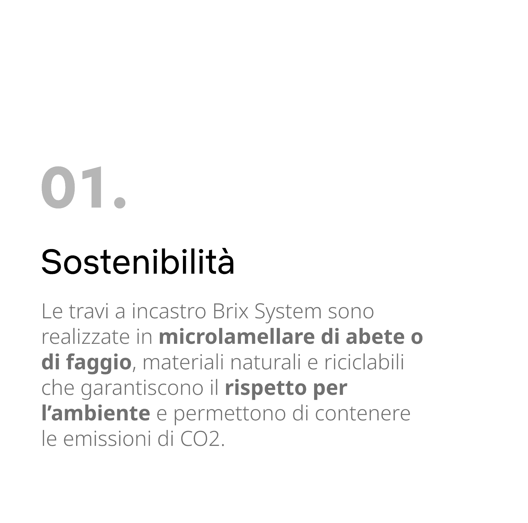 Brix System è un sistema costruttivo brevettato a livello mondiale, basato su travi a incastro in microlamellare di abete o faggio. Le travi, dotate di tagli a «pettine», si incastrano tra loro creando un grigliato modulare di circa 60 x 60-120 cm.