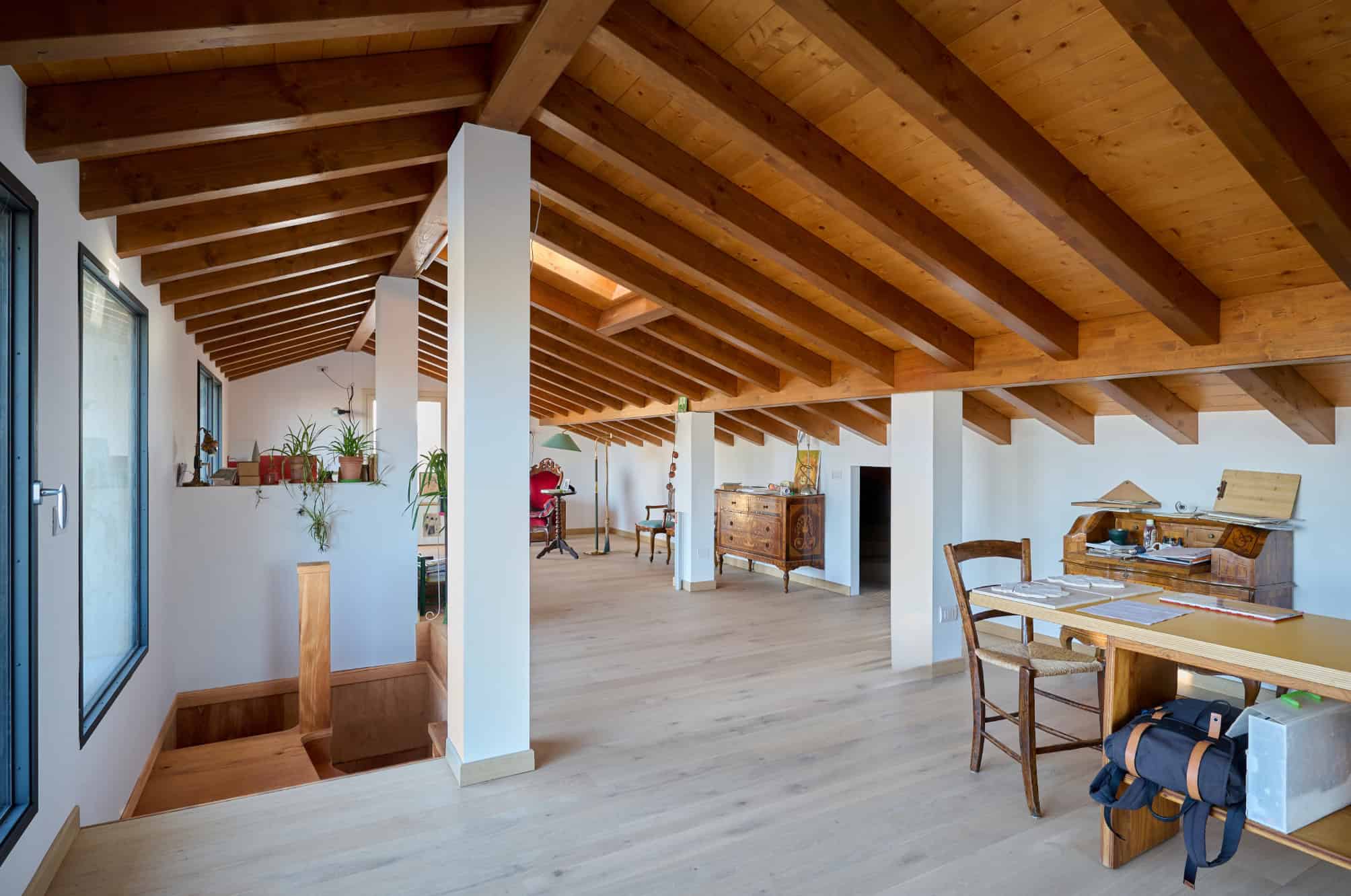 Le intercapedini generate dalle travi possono essere facilmente utilizzate per l’isolamento termico e per il passaggio di impianti elettrici e idraulici, ma anche come semplice complemento d’arredo dal design moderno.