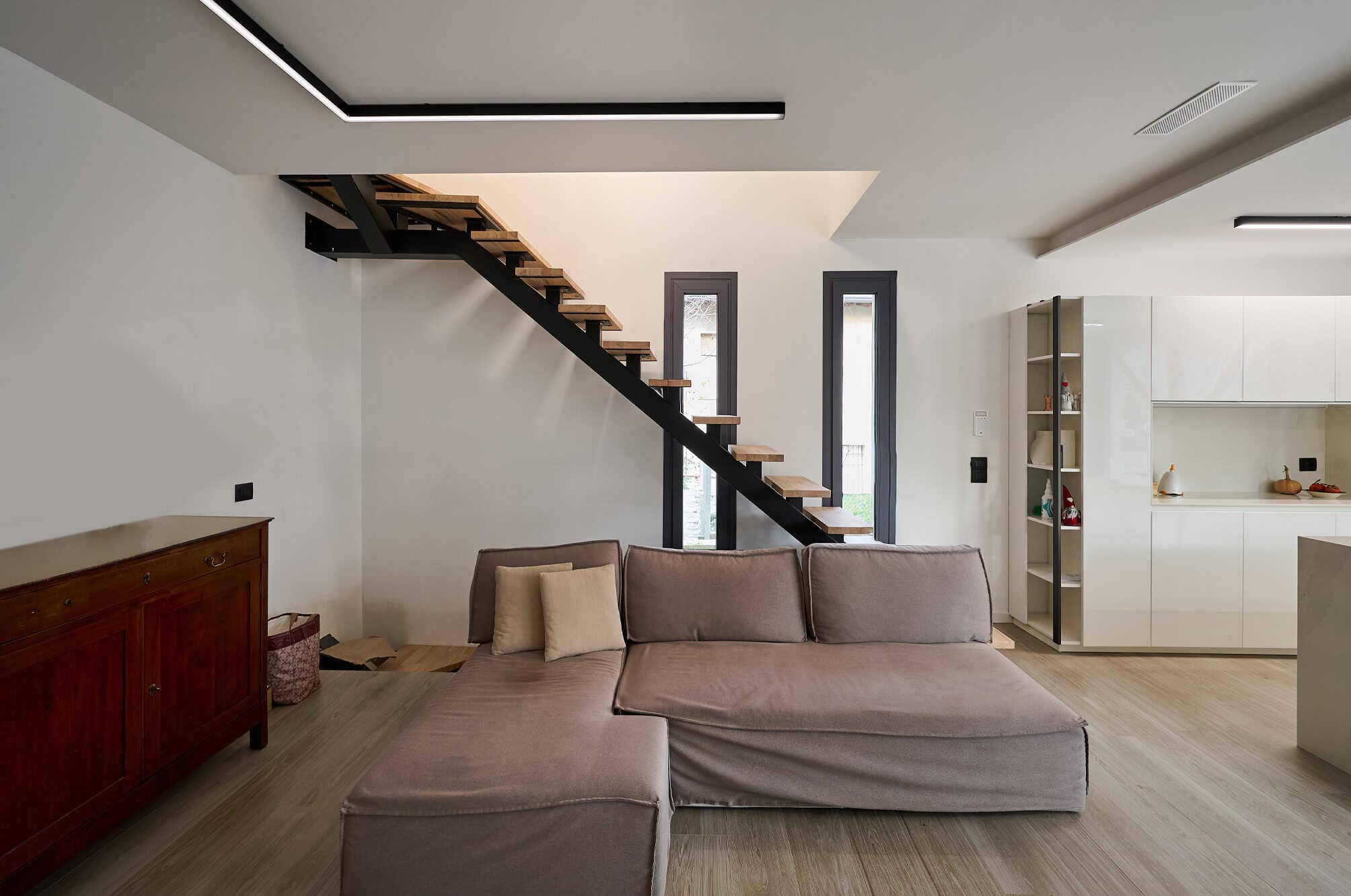 Situato al piano terra e sviluppato fino al primo piano, questo progetto si distingue per un design moderno e funzionale, pensato per valorizzare ogni ambiente attraverso soluzioni estetiche pulite e una distribuzione degli spazi ottimizzata.
